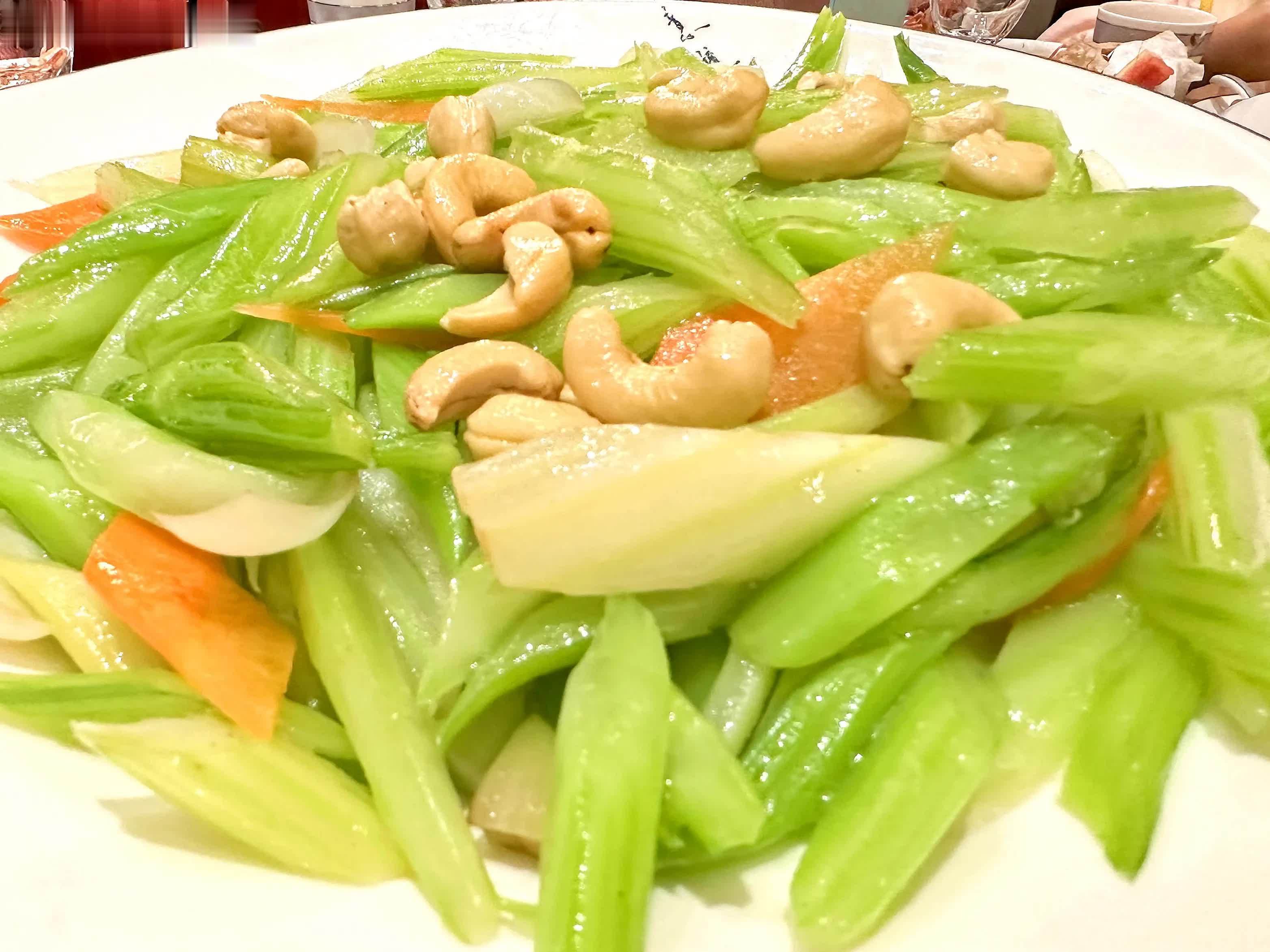 春天的芹菜,没有秋后的那股冲劲儿,也不像西芹那么粗壮,而是一种纤细的水嫩。买一把回来,叶子都是嫩绿的,茎秆一掰就断。那股独特的清香,闻着就觉得神清气爽,特别能打开胃口。用它来搭配清甜的百合和香脆的腰果,不用多余的调料,吃的就是食材本来的鲜味。